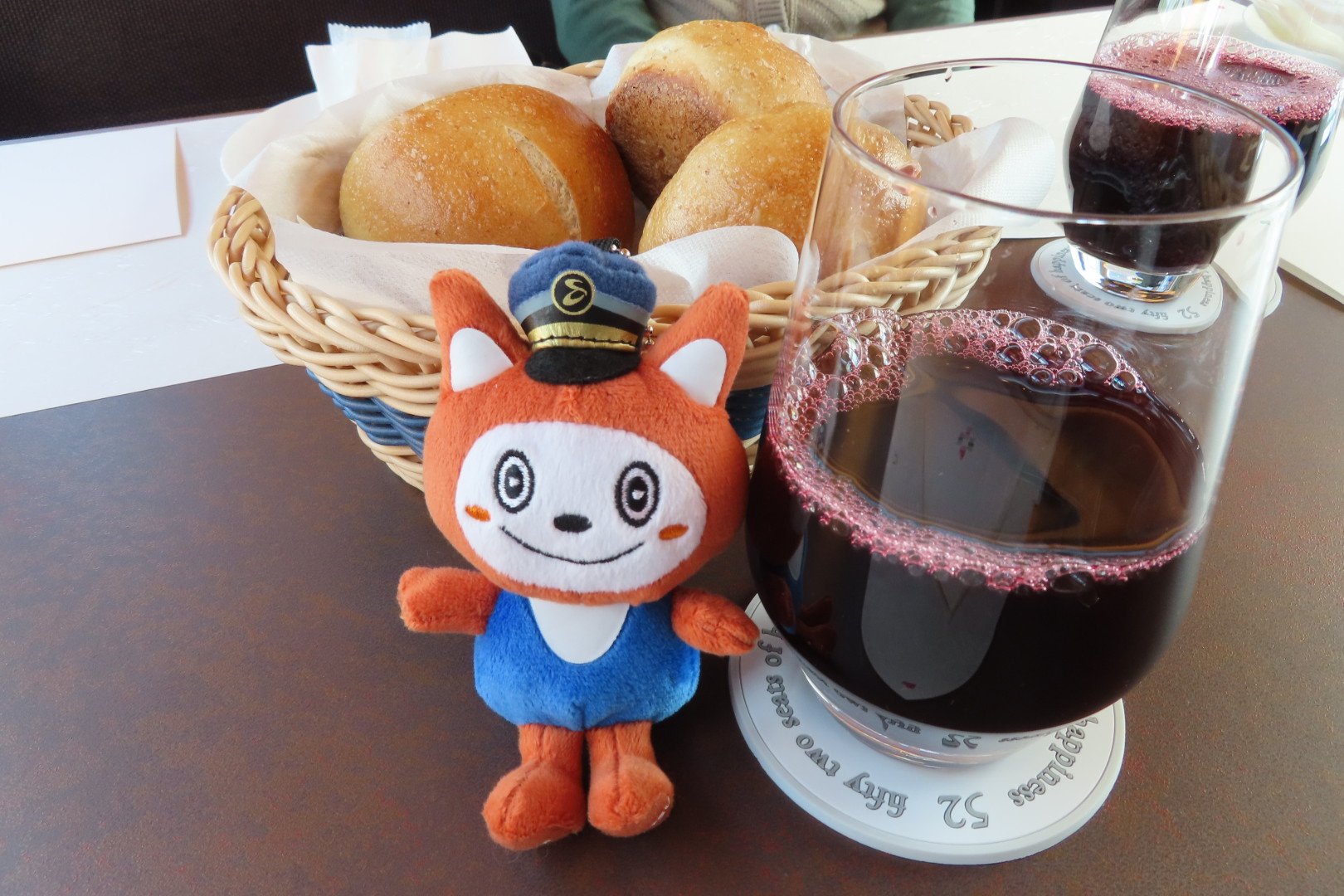 発車して間もなくドリンクとパンが運ばれてきました。