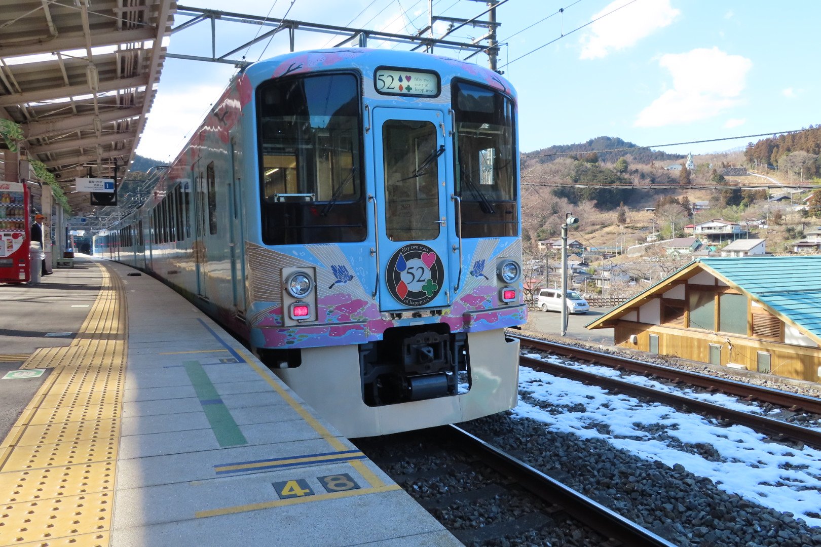 車体にデザインされている氷柱が有名な芦ヶ久保駅ですが、今年は暖冬で残念ながら見られませんでした。