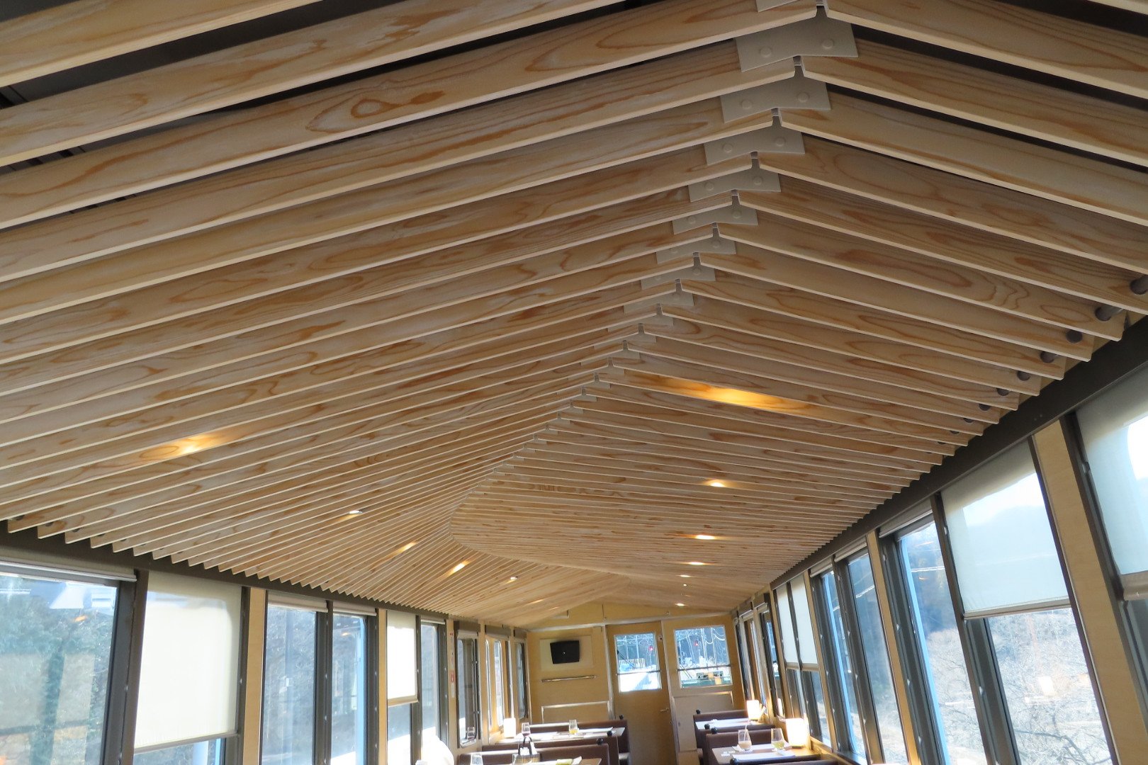 4両目の天井は西川材という木材